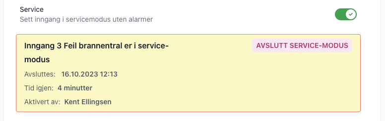 Servicemodus for innganger
